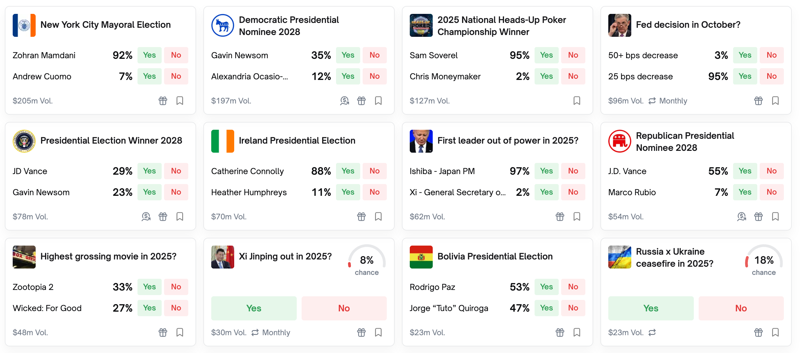 Stock markets have done this for centuries—pricing companies, economies, and inflation. But they couldn’t price everything else. Elections. Wars. Geopolitical negotiations. Whether a movie flops or Xi Jinping gets ousted. Now they can.